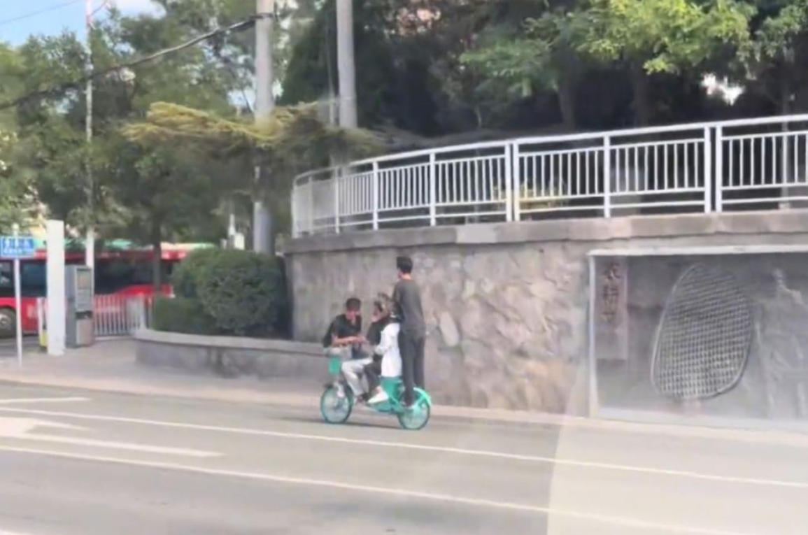 2025年7月,甘肃兰州市4名未成年人正在同乘一辆共享电动车。(兰州市公安局交警支队供图)