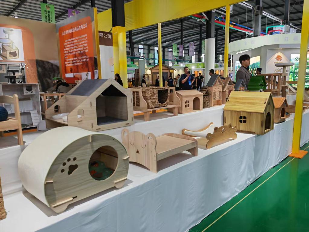 曹县作为本届林交会举办地,近年来依托传统桐木加工发展成千亿元级板材加工基地,产品包括板材、木制工艺品、家具、木雕等。如今,在传统林业的“老树”上,以木制宠物家居用品为代表的“新枝”不断蔓发。