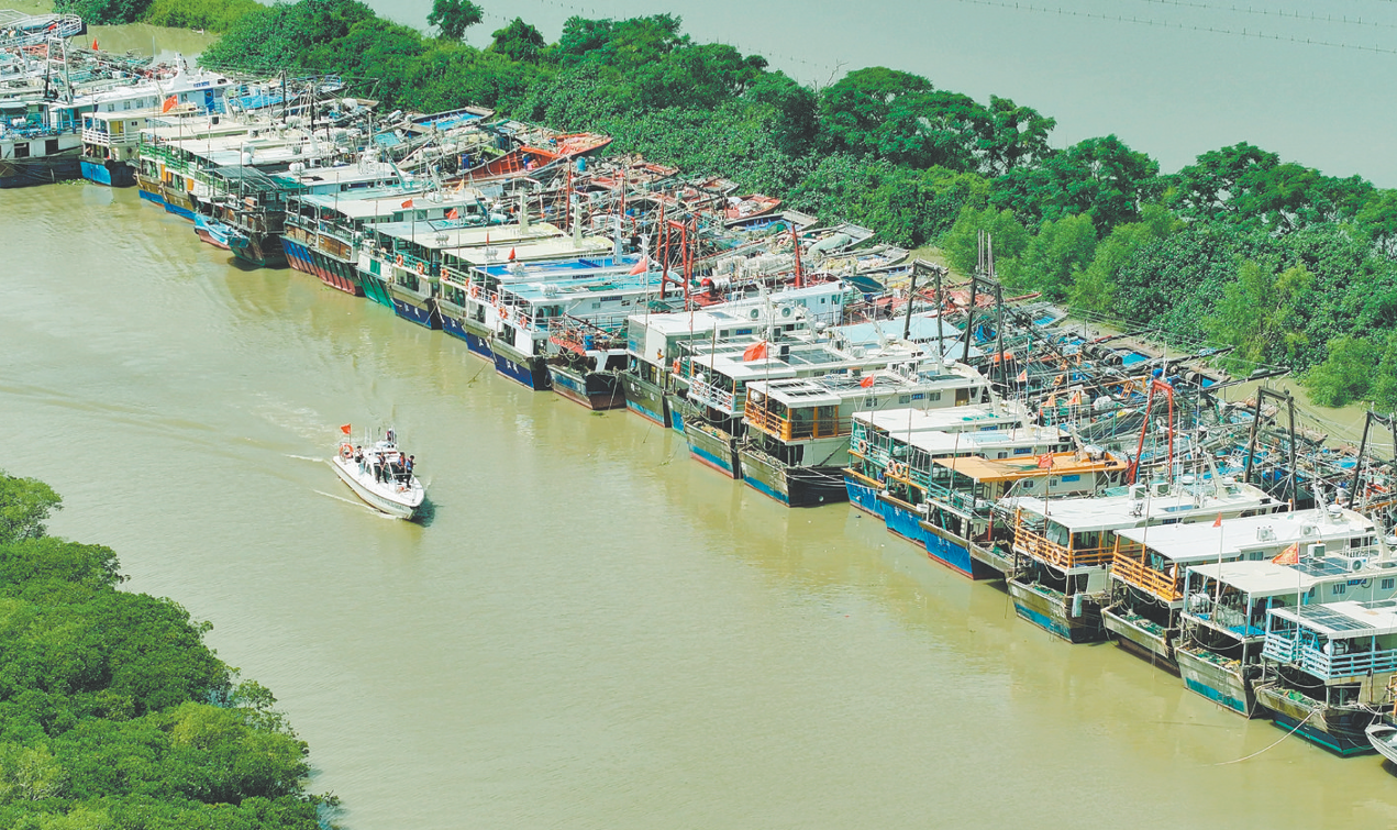 全市逾7000艘涉渔船舶已于9月22日全部回港。图为渔船在台山市汶村镇横山渔港避风。台海综供图
