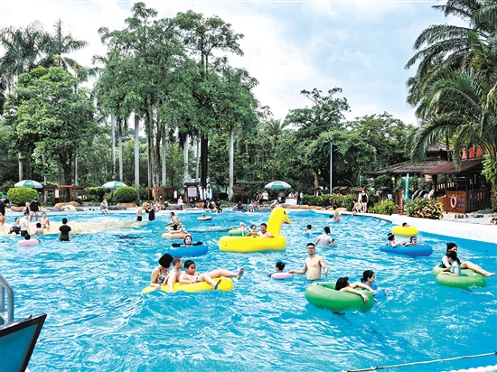▲游客们在温泉池中游玩戏水,畅享假日美好时光。