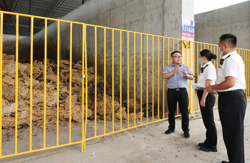5月28日,在海南象元实业有限公司,企业人员向海口海关所属三亚海关关员介绍企业进口的橡胶原材料。新华社记者金皓原 摄