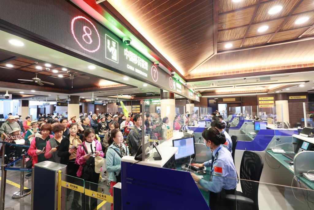 1月3日,在三亚凤凰岛国际邮轮港口岸,边检部门为邮轮旅客办理通关手续。(杨冠宇 摄)