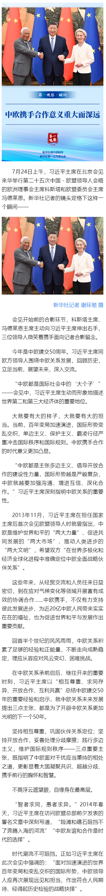第一观察·瞬间|中欧携手合作意义重大而深远