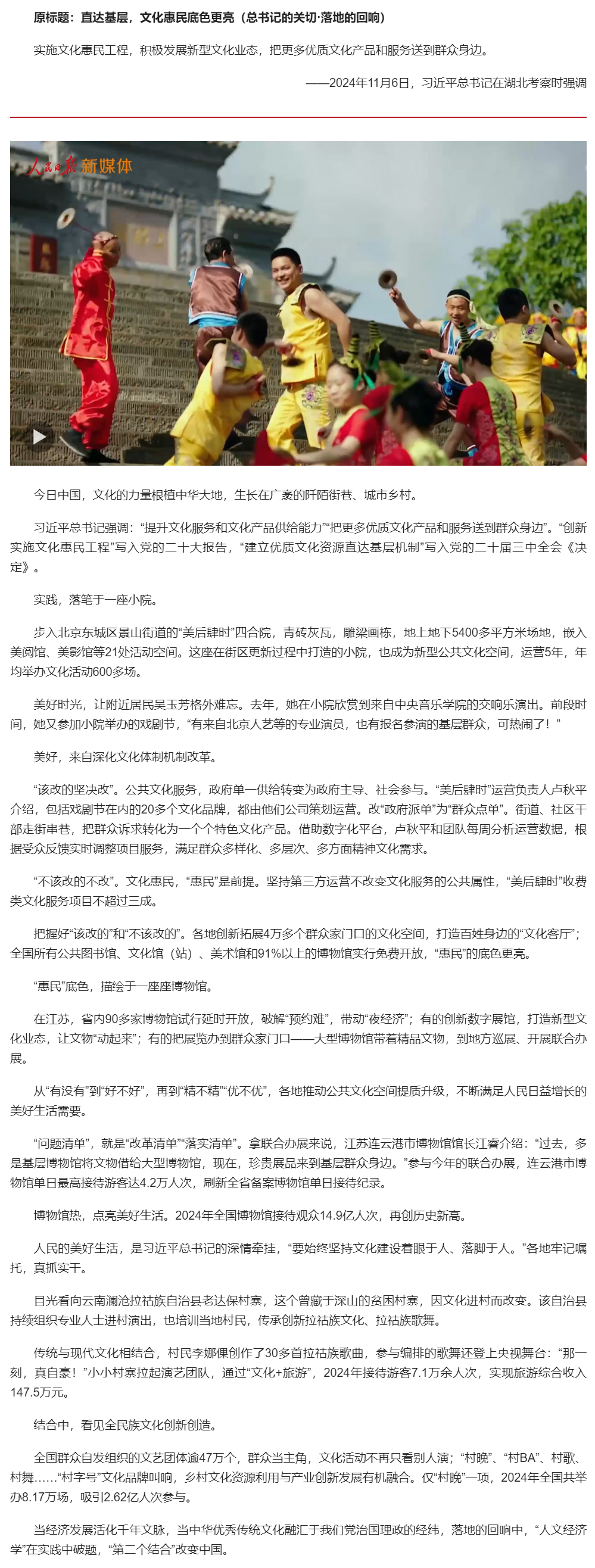 总书记的关切·落地的回响 | 直达基层,文化惠民底色更亮