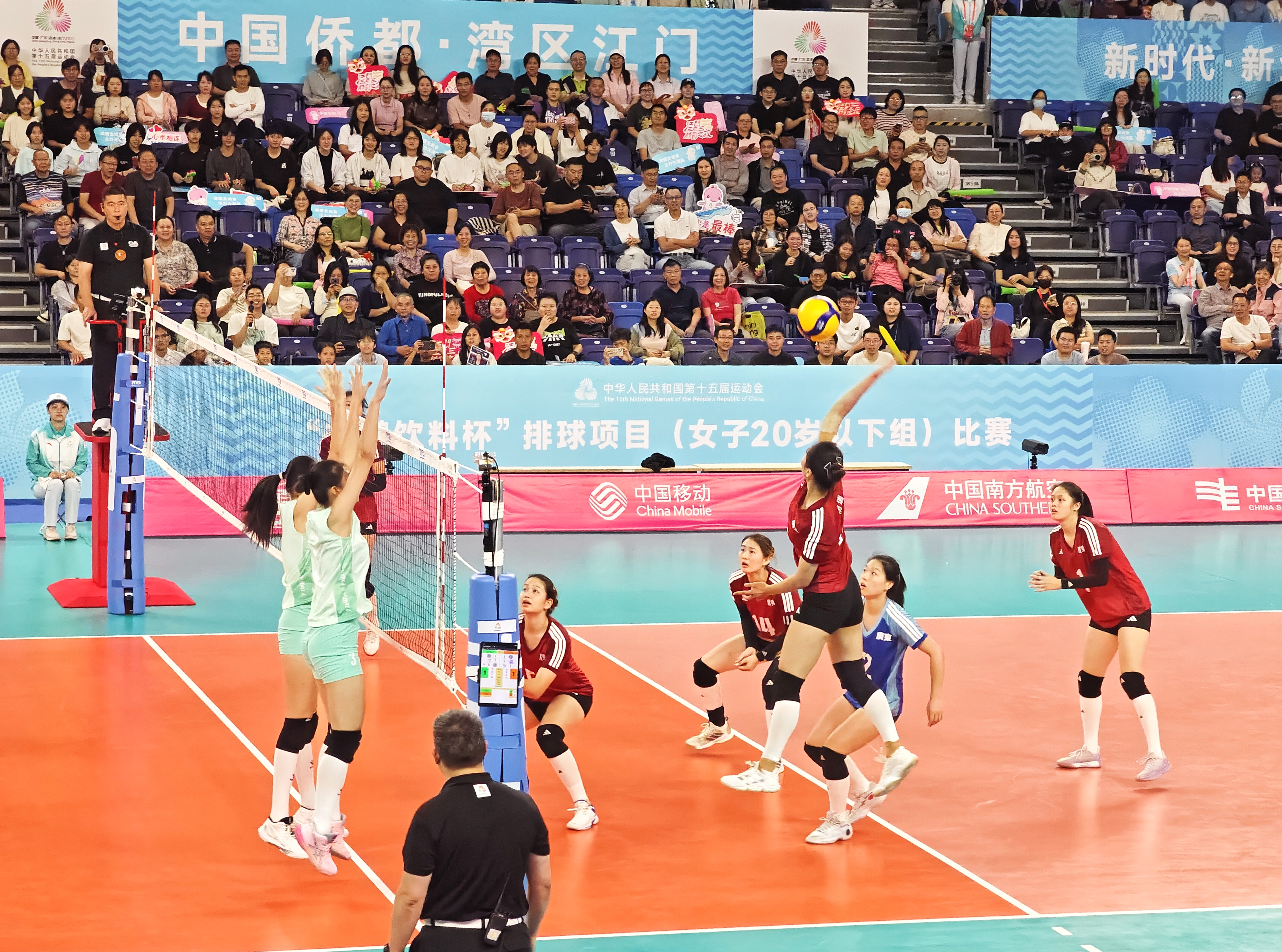 昨日,十五运会女排20岁以下组比赛在江门体育中心开赛。 郭永乐 摄