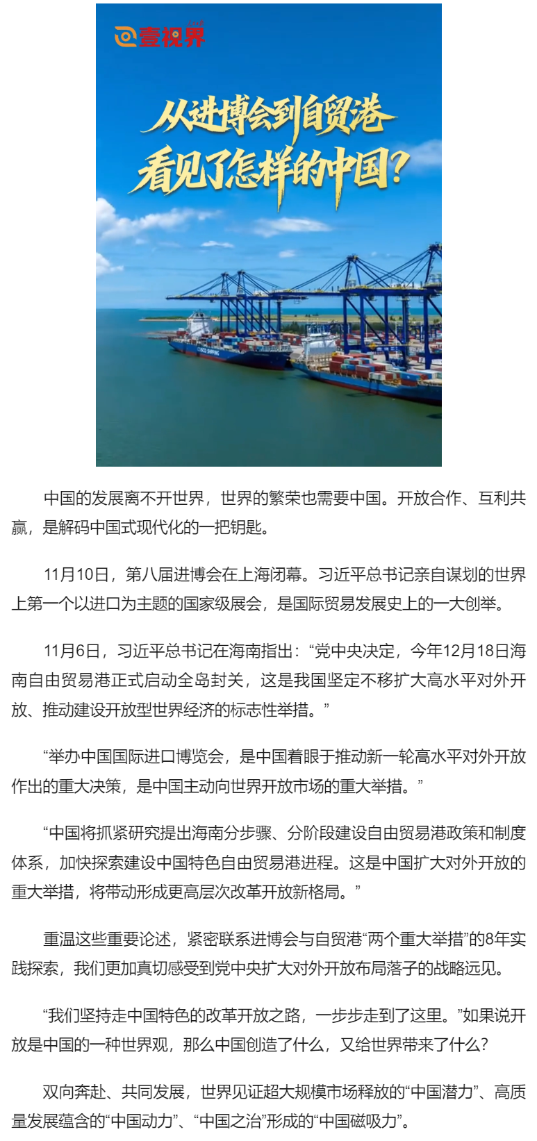 壹视界·任平文章解读|从进博会到自贸港,看见了怎样的中国?