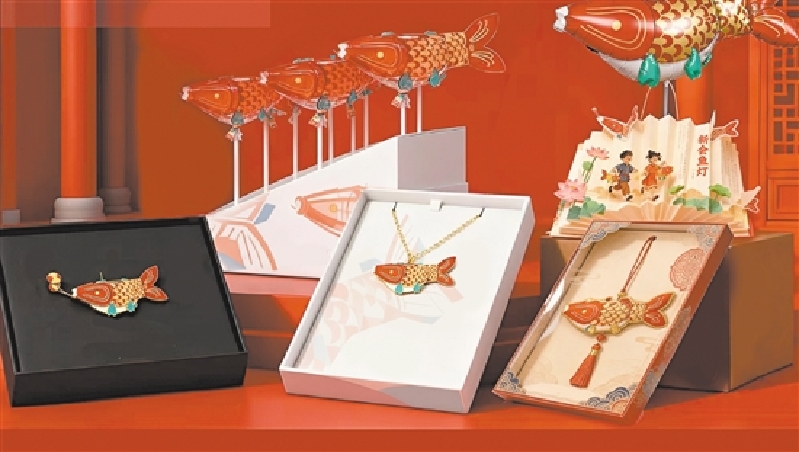 小鲤鱼棒棒糖的设计充满巧思,将新会陈皮的“甘、香、醇”风味与新会鱼灯的形态巧妙融合——非遗从被“观赏”与“听闻”的客体,转变为可以“品尝”、可以“分享”的“味觉记忆”。锦鲤胸针与年年有余香包则成功地将传统鱼灯的吉祥图样,通过极简线条和轻奢配色的现代设计语言,嵌入当代年轻人的日常生活场景——背包、衣襟、车内、室内,变成随身相伴的时尚配饰与潮流雅玩。