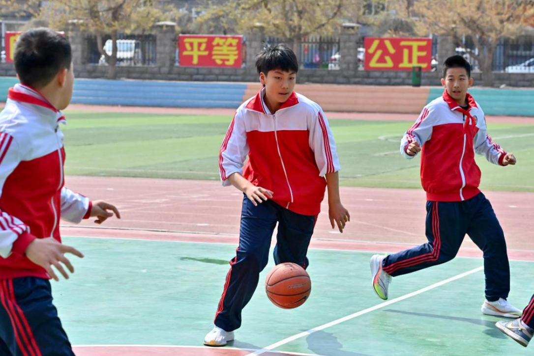 2025年4月15日,辽宁省海城市西关小学学生在新改造的篮球场上打篮球。新华社记者 吴青昊 摄
