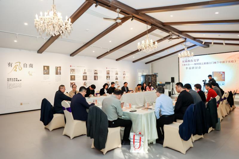 12月4日午后,花城文学院内暖意融融,思潮涌动。一场围绕长篇报告文学《微光志——解码国之重器江门地下中微子实验》(以下简称《微光志》)的研讨会在此展开。会议由江门市委宣传部、开平市委宣传部、江门市文联、开平市文联等单位主办,花城出版社、广东省报告文学学会、花城文学院承办。来自全国及广东省内的知名作家、评论家、学者齐聚一堂,共话这部记录国家重大科学工程的纪实作品。