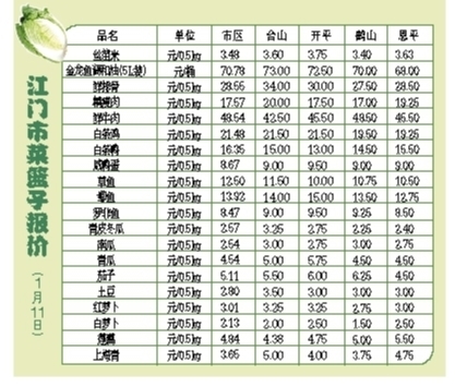 蔬菜类商品价格升降互现。所监测的蔬菜商品价格波动情况为13涨19跌,综合零售均价为4.89元/0.5kg,环比下降0.08%,其中涨幅居前的品种包括青瓜、本地菜心、茄子,零售均价分别为4.77元/0.5kg、4.86元/0.5kg、5.37元/0.5kg,环比分别上涨5.76%、4.07%、2.68%;跌幅靠前的品种为生菜、西芹、西洋菜,零售均价分别为3.70元/0.5kg、5.71元/0.5kg、4.09元/0.5kg,环比分别下降3.90%、3.22%、2.85%。
