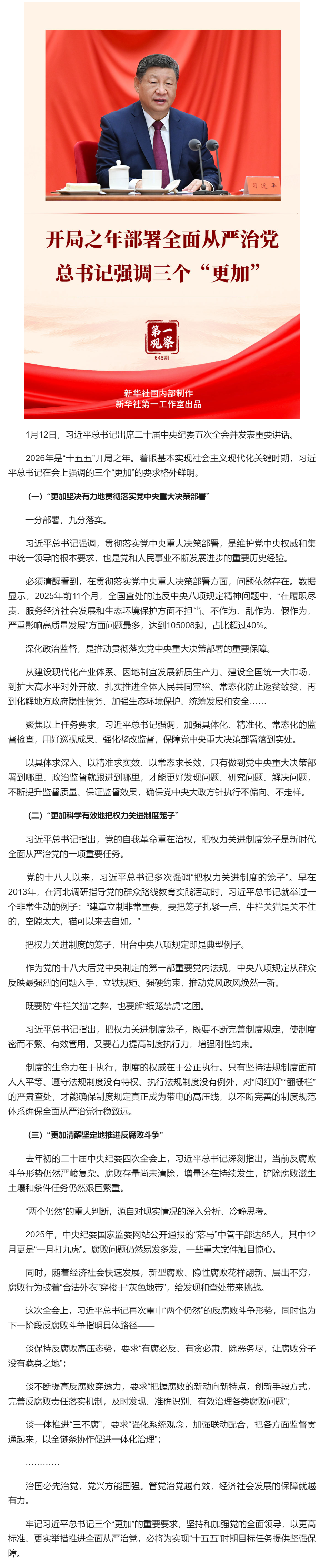 第一观察|开局之年部署全面从严治党,总书记强调三个“更加”