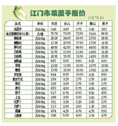 江门市菜篮子报价(1月15日)