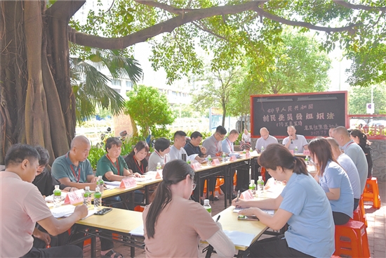 省人大常委会工作报告对江海基层立法联系点的建设成效给予明确肯定。图为该联系点在江海区直冲村就村民委员会组织法(修正草案)征集意见。江海区人大常委会供图