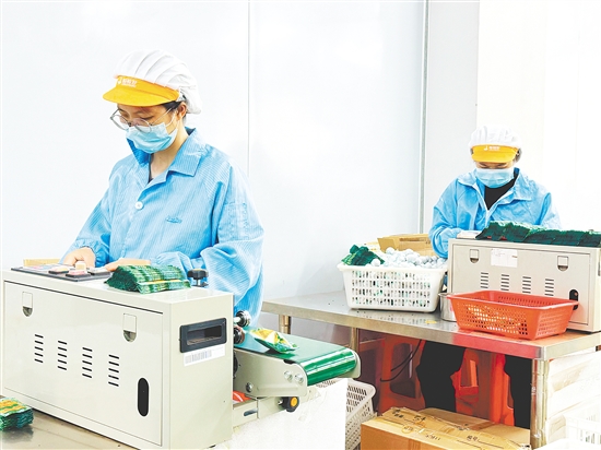 △代表、委员们建议继续推动新会陈皮等“土特产”产业链条化、品牌化、高值化发展。图为新会区合益生态农业有限公司工人在赶制陈皮茶制品。李银换摄