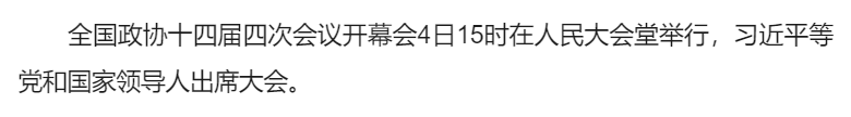 习近平等党和国家领导人出席全国政协十四届四次会议开幕会