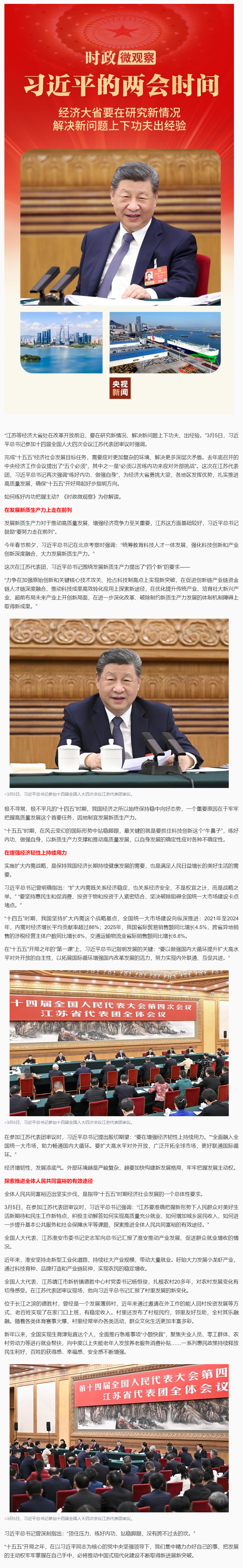 习近平的两会时间丨再到江苏团,总书记强调“练好内功”
