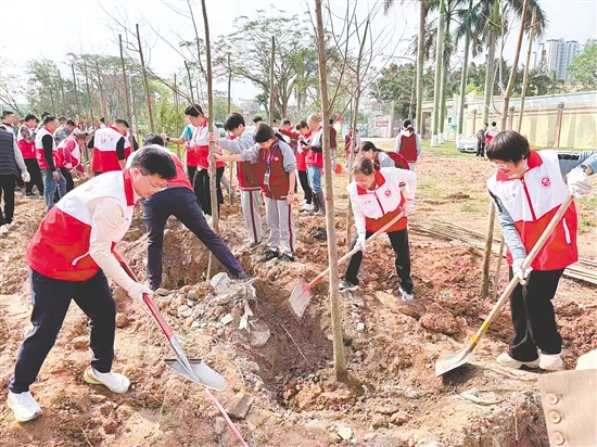 “扶苗要正,培土要实,才能让树苗扎深根、长得旺!”活动现场,镇村党员干部、群众代表、志愿者分工协作、默契配合,大家挥锹铲土、扶苗压实、围堰浇水,每一道工序细致规范、井然有序。恩平大道恩城街道黎寸村段新栽种的火山榕、香樟亭亭玉立,它们将成为串联城乡的生态景观带;沙湖镇沙湖大道作为恩平市级绿美建设示范点,沿2公里道路栽种马占相思、小叶桢楠等苗木,全力打造绿意绵延的“林荫大道”;君堂镇、良西镇、东成镇等聚焦县道沿线、古树公园、滨水河道等关键节点,因地制宜种植落羽杉、樟树、火山榕等本土树种,既筑牢生态安全屏障,又兼顾生态功能与景观价值……此次活动,恩平市11个镇(街)全域联动、同步发力,累计栽种火山榕、香樟、落羽杉等乡土适生苗木2300多棵,全力实现“栽一棵、活一棵,种一片、成一片”的建设成效。