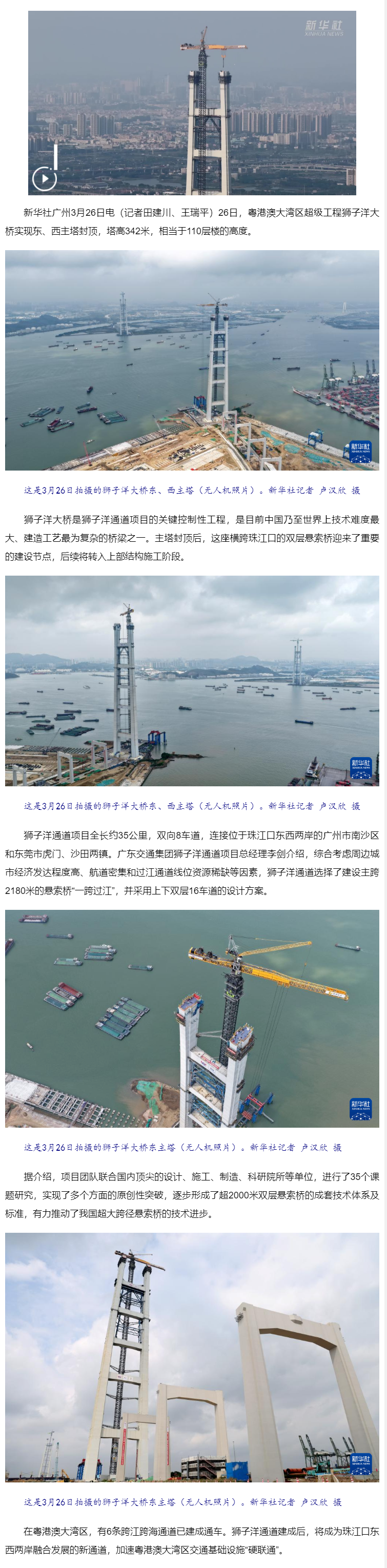 342米高!粤港澳大湾区超级工程狮子洋大桥主塔封顶