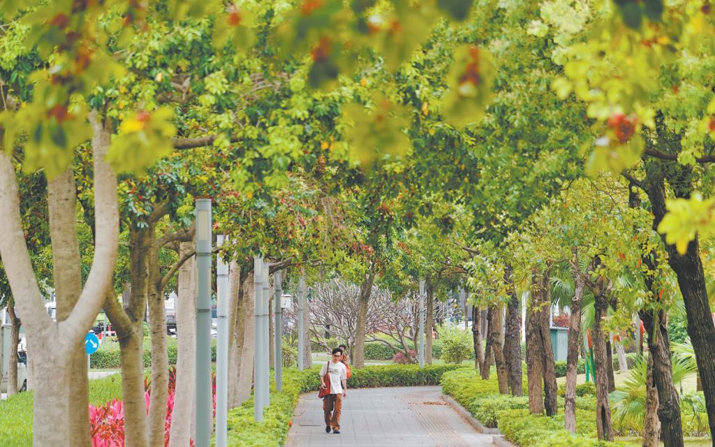 而树种的选择,关乎林荫大道的长远成效。结合江门台风频发、高温多雨、易滋生虫害的气候特点,常绿、抗风、抗虫害的乡土树种成为首选。这些树种早已适应本地水土环境,既能在台风天气中减少倒伏风险,保障出行安全,也能降低后期养护成本,更能快速枝繁叶茂。