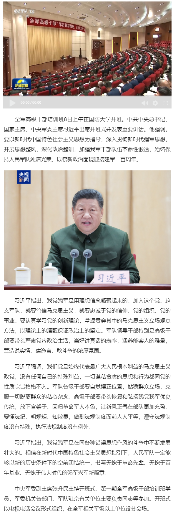 习近平在全军高级干部培训班开班式上发表重要讲话强调 开展思想整风 深化政治整训 以崭新政治面貌迎接建军一百周年