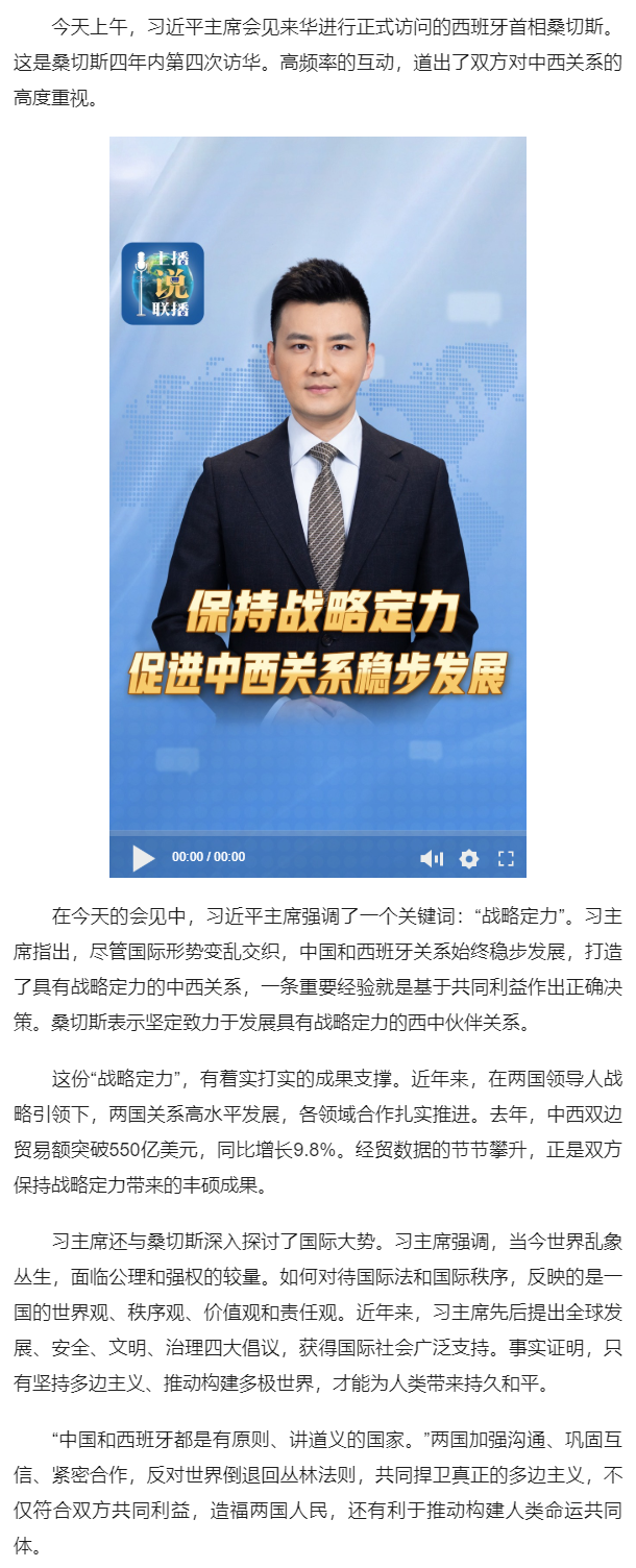 主播说联播丨中国和西班牙关系稳步发展,有一条重要经验