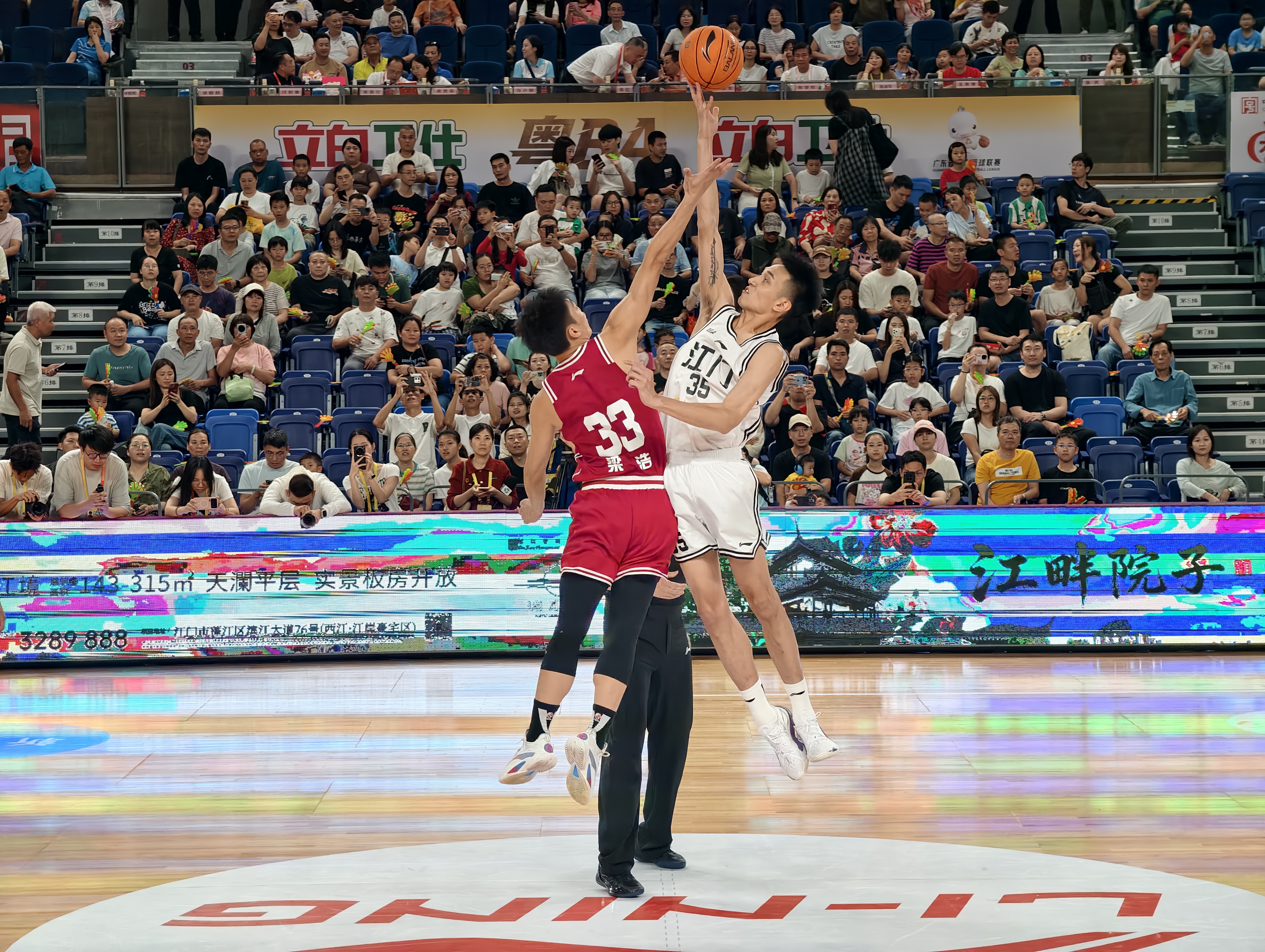 比赛开始后,首节江门队外线手感火热,并凭借防守反击和持续突破造成杀伤,建立起比分优势。茂名队则迅速调整节奏,不断冲击内线,通过快速传导寻找进攻机会,紧咬比分。此后江门队在进攻端通过积极拼抢连续获得机会,并且在外线持续保持火热手感,扩大领先优势。第二节,茂名队调整状态,连续在内线造成杀伤,一度将分差缩小至5分,但后半段江门队逐渐找回状态,稳住了局势,连中3记3分球,再次拉开分差。上半场战罢,江门队以52:41领先茂名队。