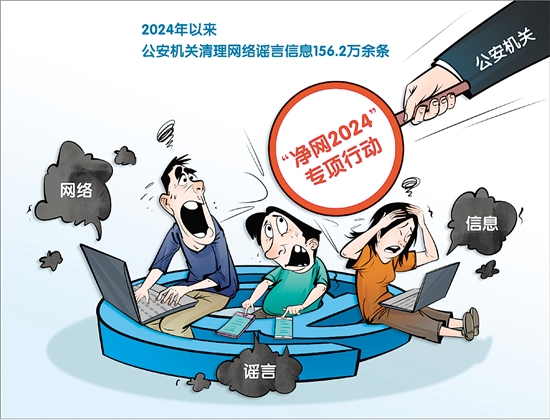 记者9月19日从公安部获悉,2024年以来,依托“净网2024”专项行动,全国公安机关网安部门已办理网络谣言类案件2.7万余起,依法查处造谣传谣网民3.1万余人,依法关停违法违规账号19.9万余个,清理网络谣言信息156.2万余条。