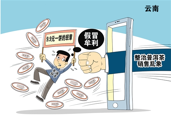 云南普洱茶在全国茶叶市场有一定的竞争力,特别是一些“名山”“名寨”茶叶受到市场认可,但也成为不法分子假冒牟利的对象。时下,“9.9元一饼的班章”“10元一饼的冰岛”等广告在网络平台和部分商店出现,影响了普洱茶产业健康发展。对此,云南市场监督管理部门加大了监管打击力度。 新华社 发