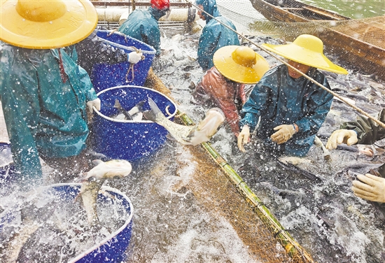目前,大沙河水库进入捕鱼季。近年来,开平市大沙镇深入践行“绿水青山就是金山银山”理念,坚持山水林田湖草沙一体化保护和系统治理,大沙河水库实现“以鱼净水、以鱼养水、以鱼调水”,水质常年保持在Ⅱ类标准以上。
