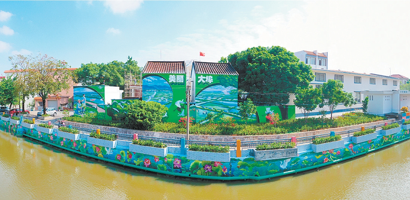 大埠村是省“百千万工程”首批典型村之一。该村通过协调各方资源,筹措资金,将村内民房墙面利用墙绘装扮一新。今年7月至10月,广州美术学院大学生“百千万工程”突击队、华南理工大学“百千万工程”突击队,以及深圳泰极猫绘画艺术有限公司在该村组织绘制墙绘,面积超300平方米,主题涵盖田美鱼肥、丰景大埠、三夹腾龙等方面。