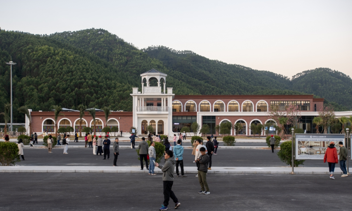 11月30日,在黄茅海跨海通道项目建设者回归暨媒体开放日活动上,大家参观正在内部装修的黄茅海服务区。 周华东 摄