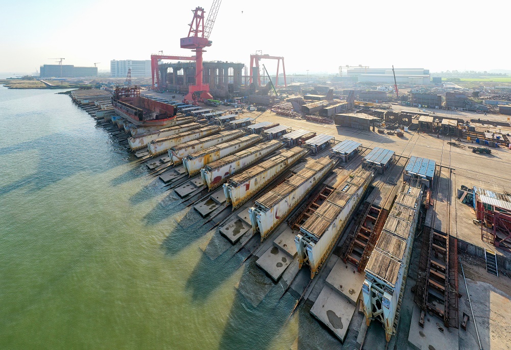 威立雅依托其拥有全球最大的15万吨级机械化梳式横向滑道及配套船台设施优势,在海工装备制造、循环经济等方面加强与珠海、深圳等地企业合作。郭永乐摄