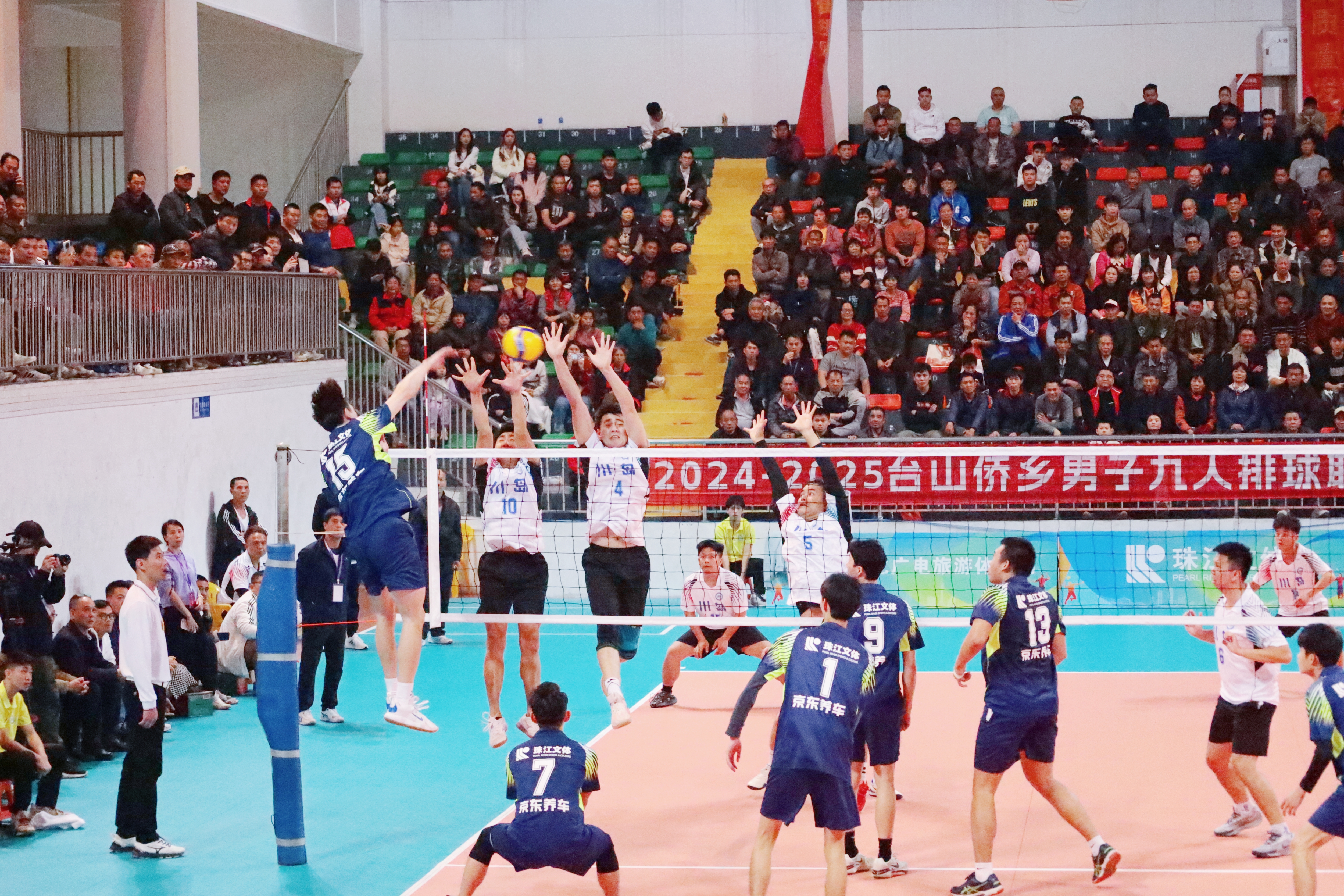 江门日报讯 (文/图 李嘉敏 通讯员/台文广旅体) 2024—2025台山侨乡男子九人排球联赛(以下简称“侨VA”)激战正酣。1月7日,随着第二阶段初赛的圆满落幕,八强队伍脱颖而出,成功晋级决赛。八强队伍分别是:白沙队、川岛队、大江队、四九队、都斛队、斗山队、台城队和水步队。