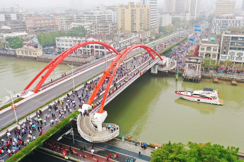 这次活动选取了胜利桥和如意桥两个充满吉祥寓意的点位,图为队伍行经胜利桥。郭永乐 摄