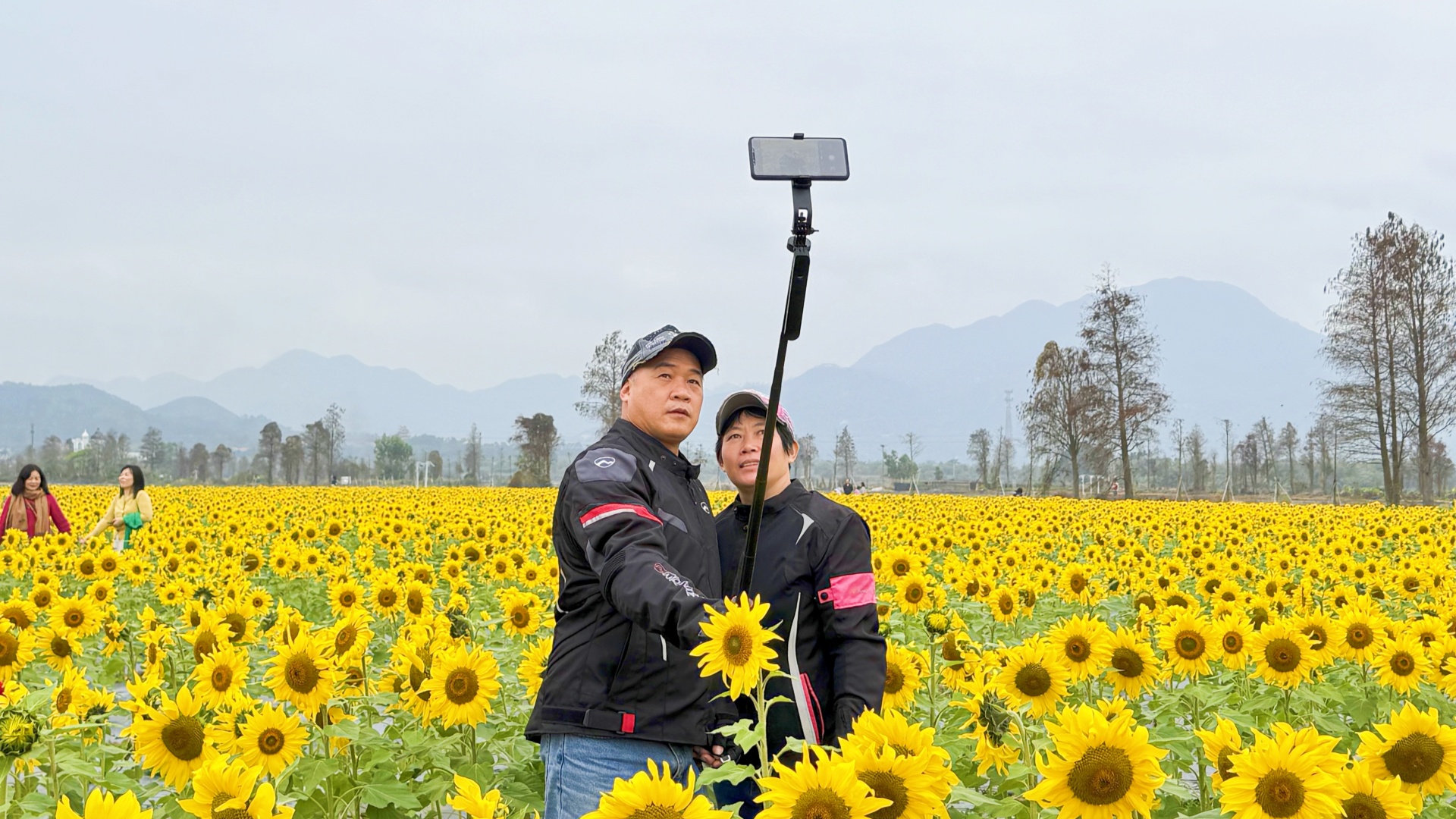 近期,在位于台山市都斛镇的中国农业公园内,一片约2.7公顷的油葵花海吸引了大批游客前来观赏。这片金灿灿的油葵花海与农田相映成趣,构成了一幅美丽的田园画卷。游客们穿梭在花海中,仿佛走进了油画世界,纷纷拍照留念。