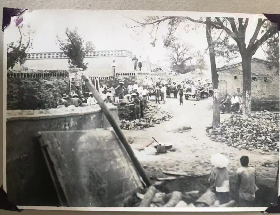 相册里的照片:1939年日军逼迫河北固安群众修筑碉堡。(固安县委办公室供图)