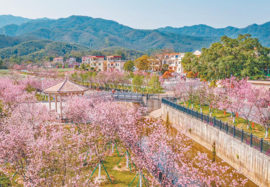 樱花河堤位于城西村范屋、谢屋村,是进入七瓮井景区的必经之路。特约摄影师欧蕊荣 摄
