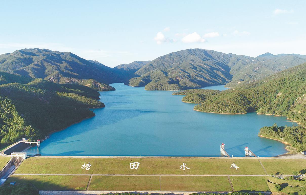 台山全市水库蓄水总量达4.67亿立方米,较常年同期偏多34%。图为蓄水的塘田水库。