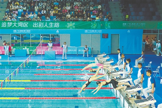 江门日报讯 (记者/郭永乐 蔡昭璐 通讯员/刘玥璇) 12月9日,中华人民共和国第十二届残疾人运动会暨第九届特殊奥林匹克运动会江门赛区迎来第二个比赛日,特奥游泳、篮球项目正式开赛,来自全国33个代表团的运动健儿在赛场挥洒汗水、奋力拼搏,展现出不屈不挠的体育精神。赛场内外,江门特色文化元素精彩亮相,吉祥物互动趣味十足,为赛事增添了别样温情。