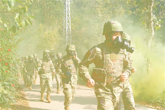 徒步行军途中,设置防护、观察报知、武器操作、机动行军等紧贴实战的课目,大部队穿越染毒地带、防“敌”无人机侦察、野战生存,每一个课目环环相扣,让大家如临“战场”。