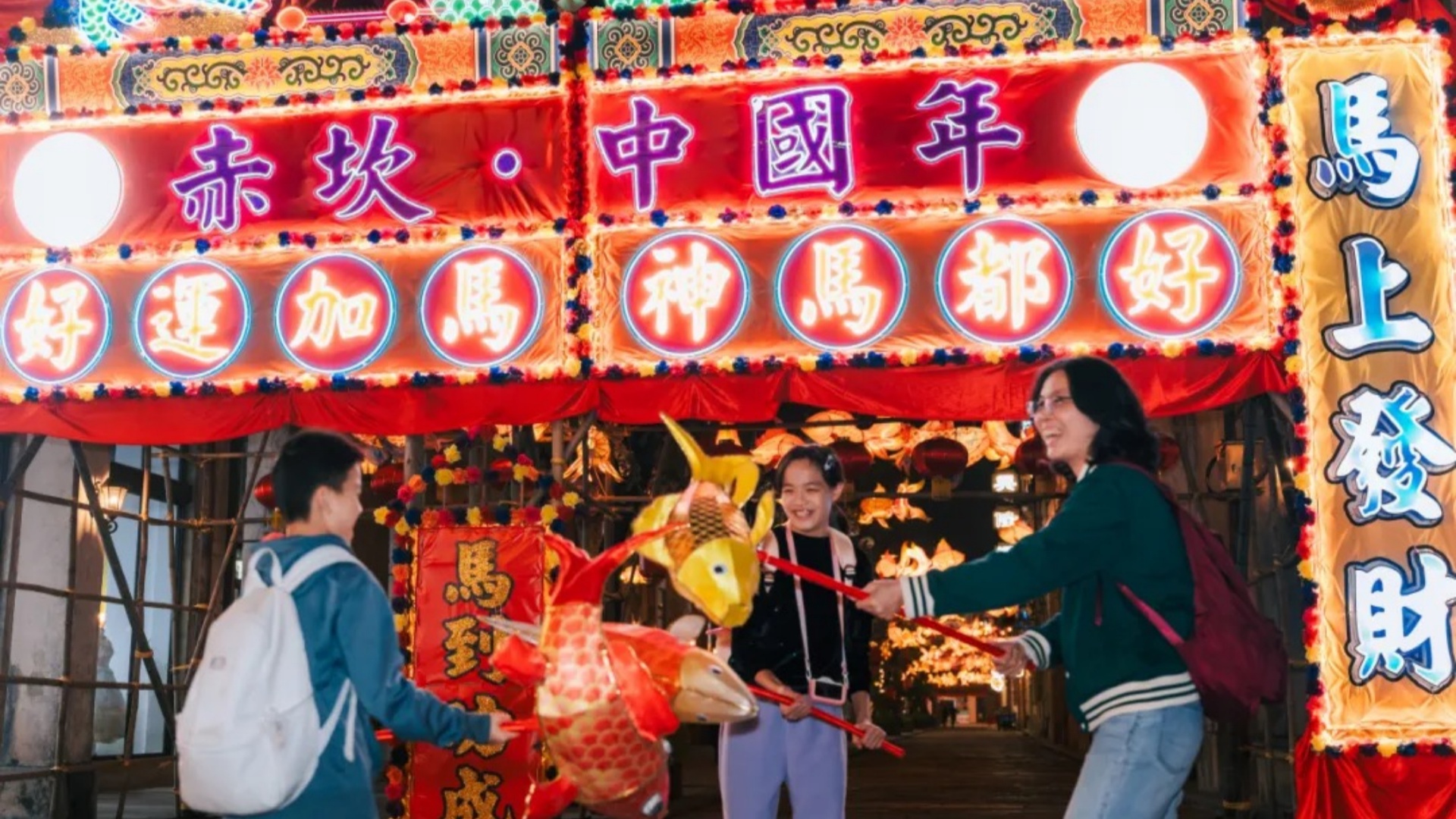9场绝美新春烟花璀璨绽放,非遗鱼灯巡游长街蜿蜒,锦鲤鱼灯翩翩起舞,寓意财源滚滚;孔明灯升空祈福,明灯三千照亮夜空,为亲朋好友许下“马上有福、龙马精神”的新春愿望。火壶等火技表演轮番上阵,Disco派对上演经典歌舞,非遗民俗盛宴让游客沉浸式感受侨乡年味。
