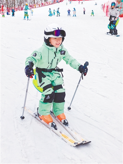 阮先生的孩子在旅途中享受到了滑雪的乐趣。