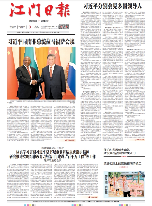 - ② 本网未注明"稿件来源:江门日报"的文/图等稿件均为转载稿,如其他媒体、网站或个人从本网下载使用,必须保留本网注明的"稿件来源",并自负版权等法律责任。