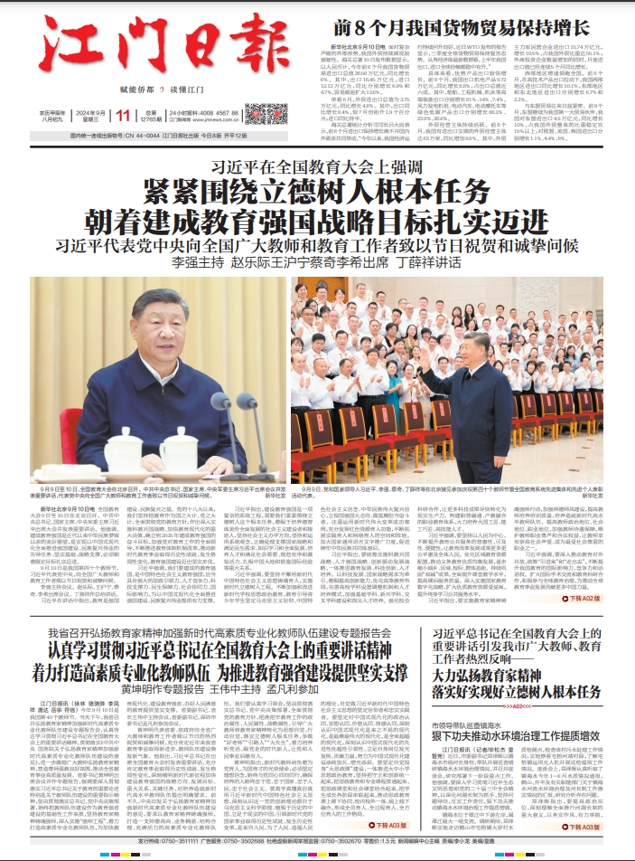 - ① 凡本网注明"稿件来源:江门日报"的所有文字、图片和音视频稿件,版权均属江门日报社所有,任何媒体、网站或个人未经本网协议授权不得复制或转载。已经本网协议授权的媒体、网站,在下载使用时必须注明"稿件来源:江门日报",违者本网将依法追究责任。