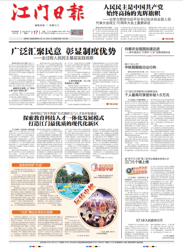 - ① 凡本网注明"稿件来源:江门日报"的所有文字、图片和音视频稿件,版权均属江门日报社所有,任何媒体、网站或个人未经本网协议授权不得复制或转载。已经本网协议授权的媒体、网站,在下载使用时必须注明"稿件来源:江门日报",违者本网将依法追究责任。