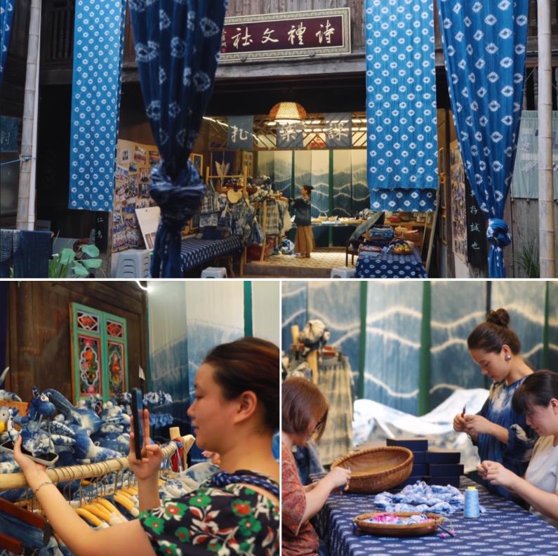 尽管她把家里的三姑六婆都找来帮忙,印染手作依然供不应求。等不及的游客们甚至自己动手,客串起了“伙计”。