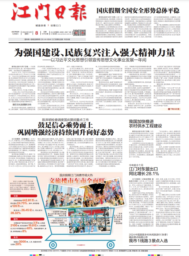 - ② 本网未注明"稿件来源:江门日报"的文/图等稿件均为转载稿,如其他媒体、网站或个人从本网下载使用,必须保留本网注明的"稿件来源",并自负版权等法律责任。