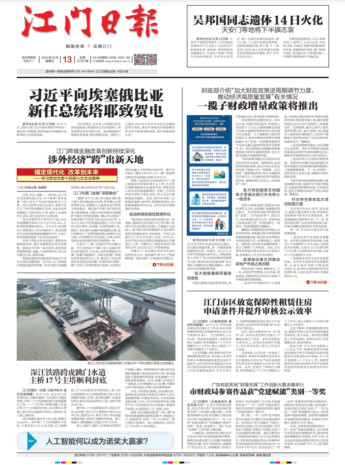 - ② 本网未注明"稿件来源:江门日报"的文/图等稿件均为转载稿,如其他媒体、网站或个人从本网下载使用,必须保留本网注明的"稿件来源",并自负版权等法律责任。