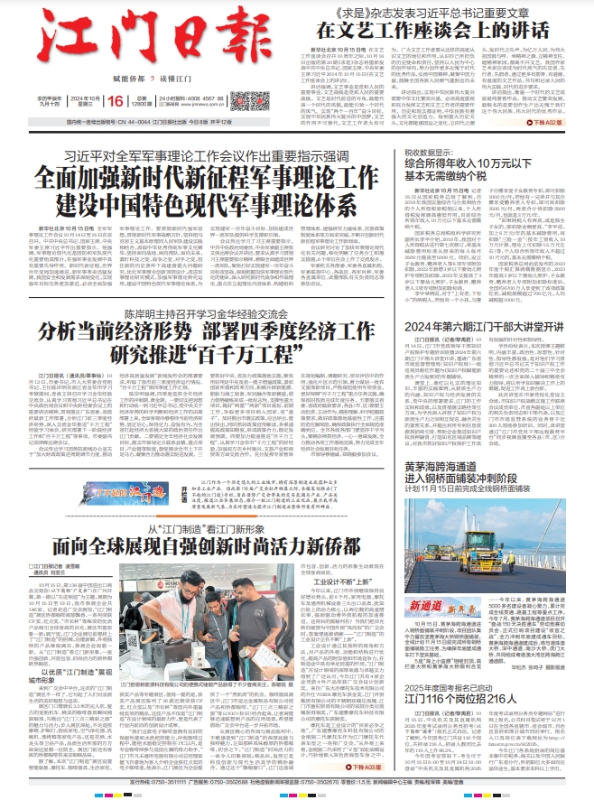 - ② 本网未注明"稿件来源:江门日报"的文/图等稿件均为转载稿,如其他媒体、网站或个人从本网下载使用,必须保留本网注明的"稿件来源",并自负版权等法律责任。
