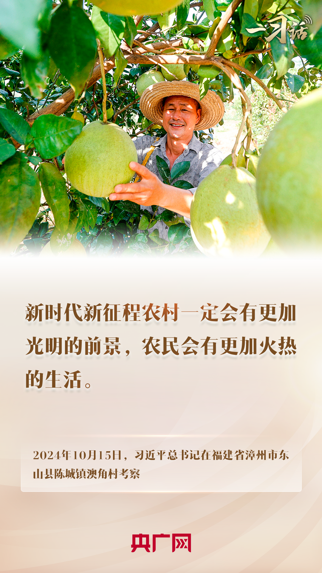 民族要复兴,乡村必振兴。农村生活怎么样,农民日子过得好不好,始终是习近平总书记心中的牵挂。就在今年9月,总书记在甘肃天水市麦积区南山花牛苹果基地考察时,向现场的果农、农技人员详细询问花牛苹果品质特色、种植技术、市场销路等,勉励乡亲们把苹果产业做得更大更强,过上像苹果一样红红火火的生活。这次时隔23年再到澳角村考察,总书记说,“看到村里发生了很大变化,很是欣慰、很有感慨。”总书记勉励大家,新时代新征程农村一定会有更加光明的前景,农民会有更加火热的生活。